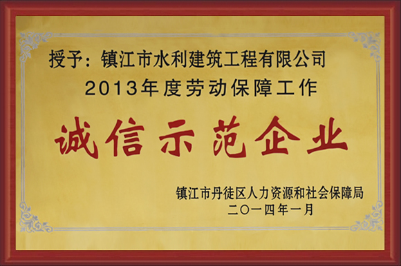 公司被評為重合同守信用企業(yè)、江蘇省水利安全生產(chǎn)標準化二級單位、AAA級資信企業(yè)、誠信示范企業(yè)、全國工程建設(shè)用戶滿意施工企業(yè)。